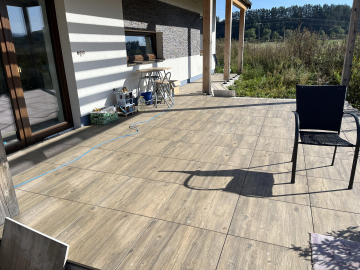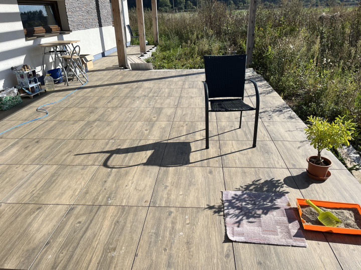 Pokládka dlažby na terče Podtureň