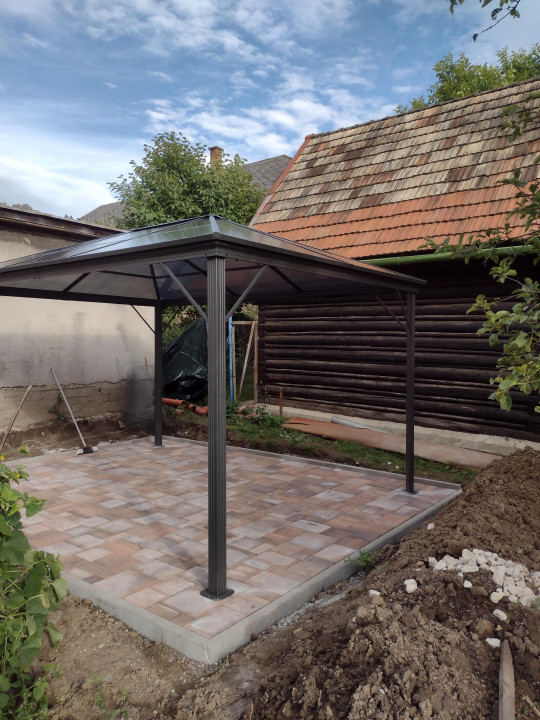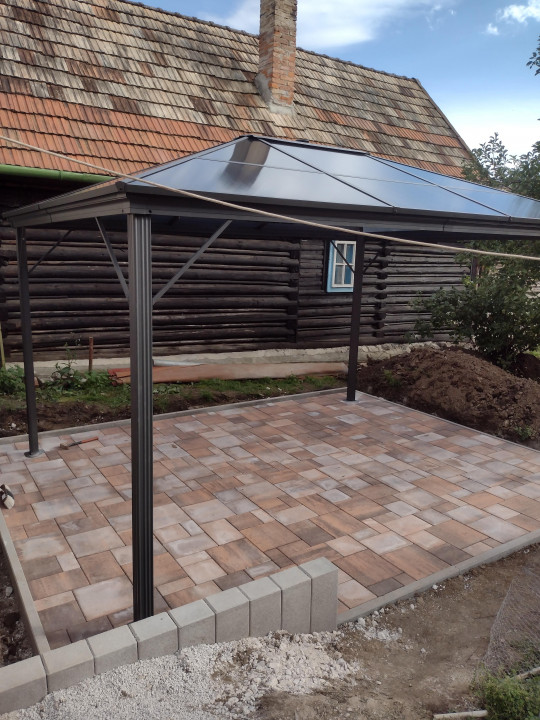Pokládka zámkovej dlažby a montáž pergoli lip.Sliače